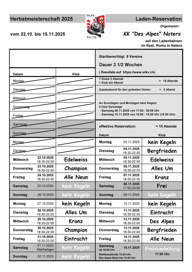 Ladenreservation zur Herbstmeisterschaft in Naters