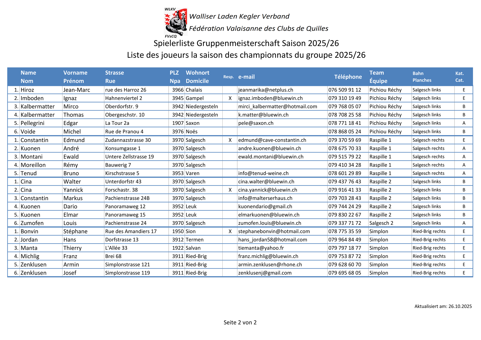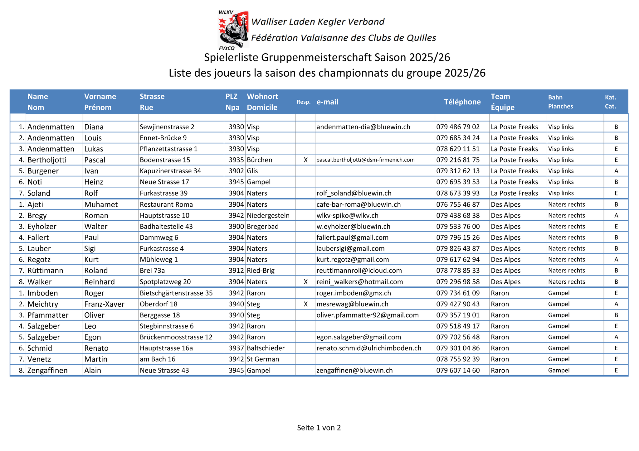 Spielerliste Gruppenmeisterschaft Saison 2025/26